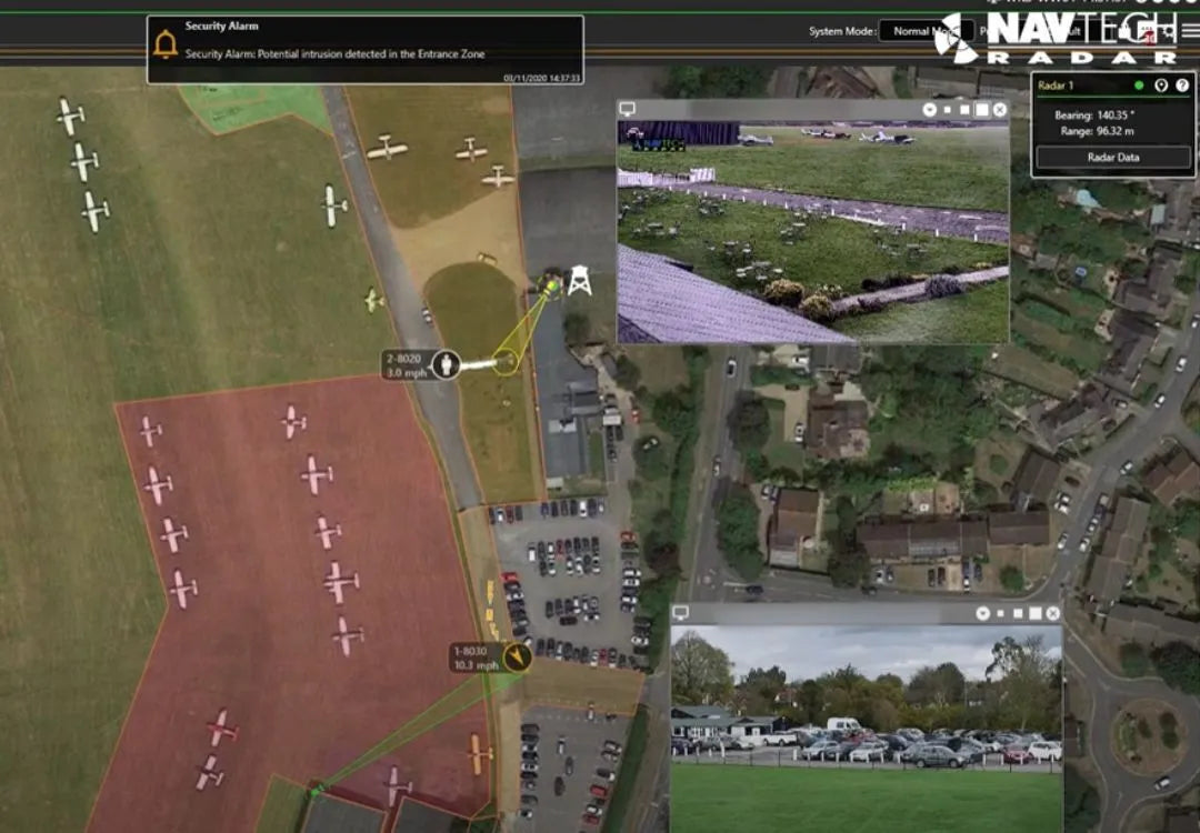 Navtech’s AdvanceGuard security solution is an innovative, wide area surveillance system providing automatic continuous surveillance on both sides of the perimeter. It uses high-definition radar and intelligent, rules-based software to protect complex, active sites where legitimate and illegitimate activity may occur together, including airfields and large storage areas.